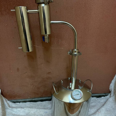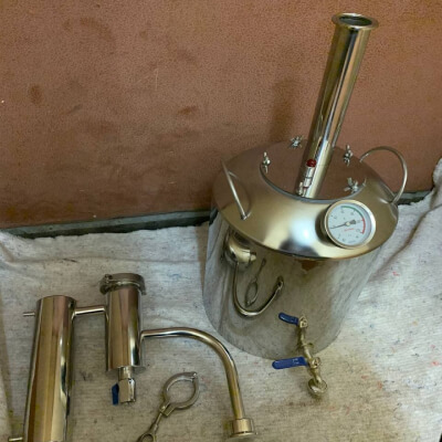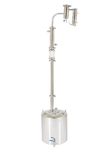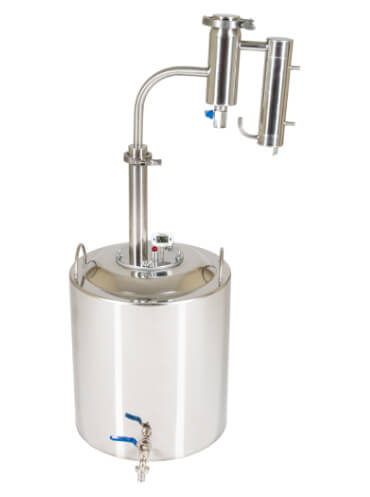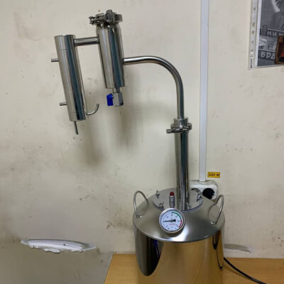 Заключительный этап очистки — сухопарник с краном для слива. На его стенках происходят повторная конденсация и переиспарения спирта. Одновременно с эффективной очисткой происходит и ароматизация напитка. (Попробуйте добавить в сухопарник цедру лимона или ароматные травы).