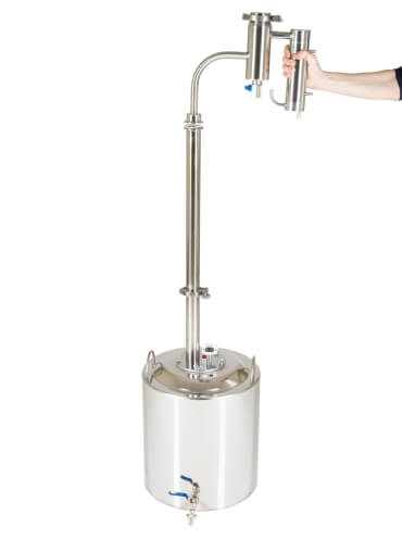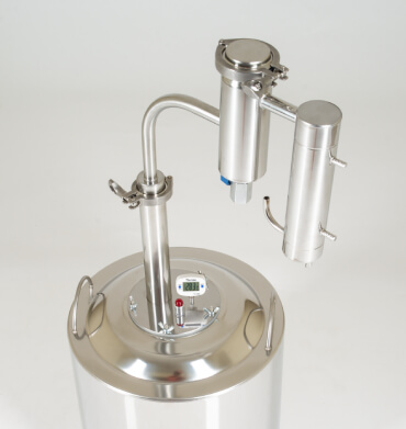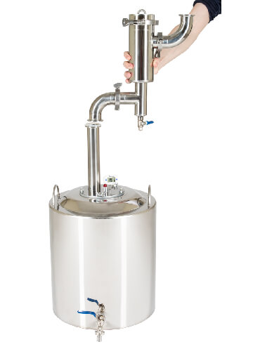 Широкие соединительные трубки диаметром 18 мм и спускной клапан гарантируют полную безопасность при перегонке. Закупорка исключена.